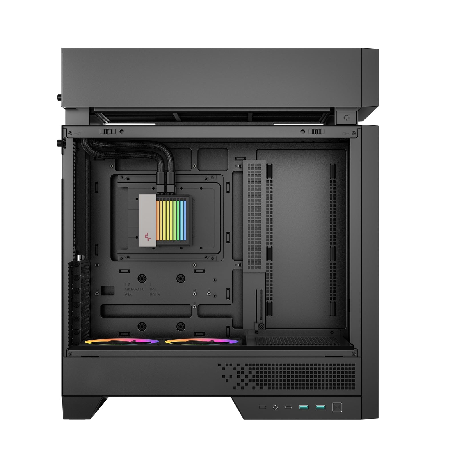 keeps things cooler with a modular split-chamber layout. It places the radiator in its own zone, creating separate airflow paths for heat-generating components and letting the whole system run at its best.